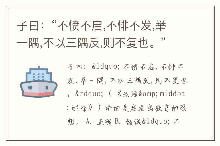 子曰:“不愤不启,不悱不发,举一隅,不以三隅反,则不复也。”(《论语·述而》)讲的是启发式教育的思想。 A. 正确 B. 错误