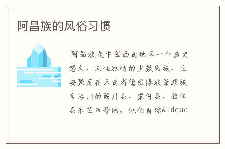 阿昌族有自己的语言,属汉藏语系藏缅语族景颇语支。