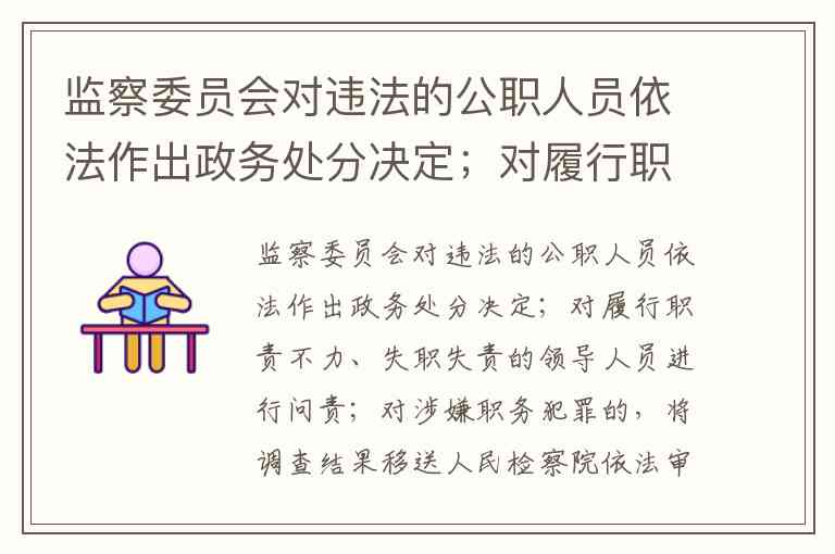 监察委员会对违法的公职人员依法作出政务处分决定;对履行职责不力、失职失责的领导人员进行问责;对涉嫌职务犯罪的,将调查结果移送人民检察院依法审查、提起公诉;向监察对象所在单位提出监察建议 A. 正确 B. 错误