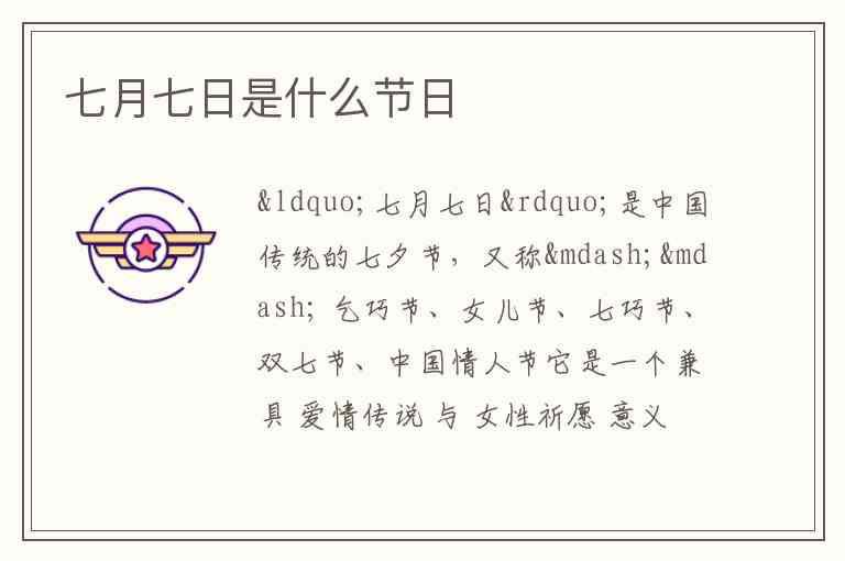 它是一个兼具 爱情传说 与 女性祈愿 意义的节日。下面为你详细介绍