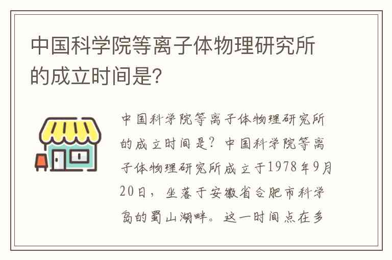 中国科学院等离子体物理研究所的成立时间是?