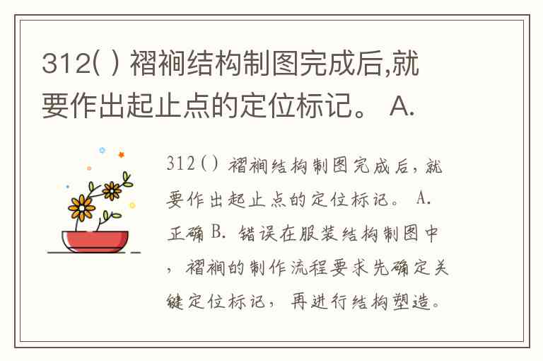 312( ) 褶裥结构制图完成后,就要作出起止点的定位标记。 A. 正确 B. 错误