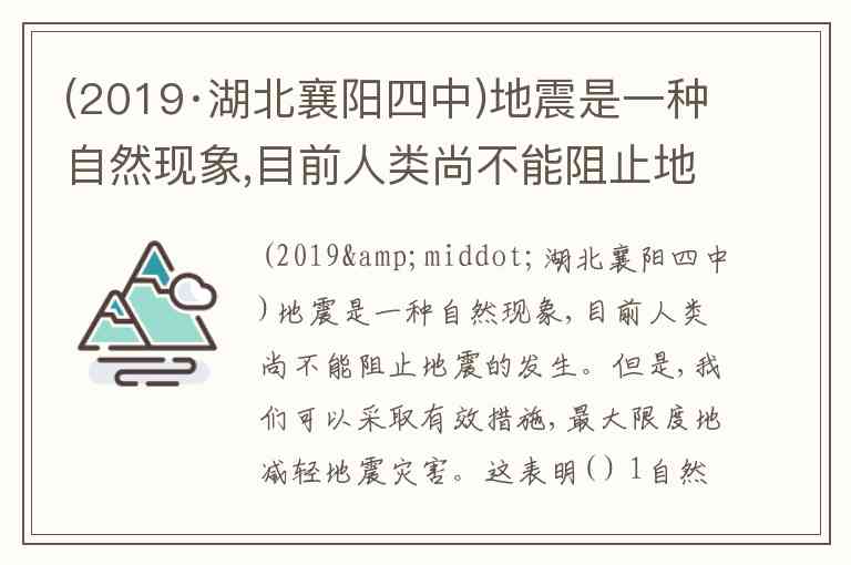 地震作为自然现象无法阻止但可通过措施减轻灾害,这体现了人类在规律面前并非无能为力,而是能实现尊重客观规律与发挥主观能动性的辩证统一。题目中①“自然界的存在及其发展遵循固有规律”正确,因为地震的发生是地球板块运动的自然结果,不受人的意志影响,这印证了规律的客观性;②“人能够认识和利用规律以造福人类”也正确,例如通过地震预警系统、抗震建筑设计等手段降低损失,正如文档中提到“我们可以有效减轻地震带来的灾害”。