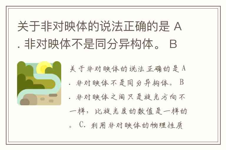 关于非对映体的说法正确的是 A. 非对映体不是同分异构体。 B. 非对映体之间只是旋光方向不一样,比旋光度的数值是一样的。 C. 利用非对映体的物理性质的差别,可将外消旋体制成非对映体,从而把它们拆分开。 D. 旋光方向相反的非对映体等量混合也可以组成外消旋体。