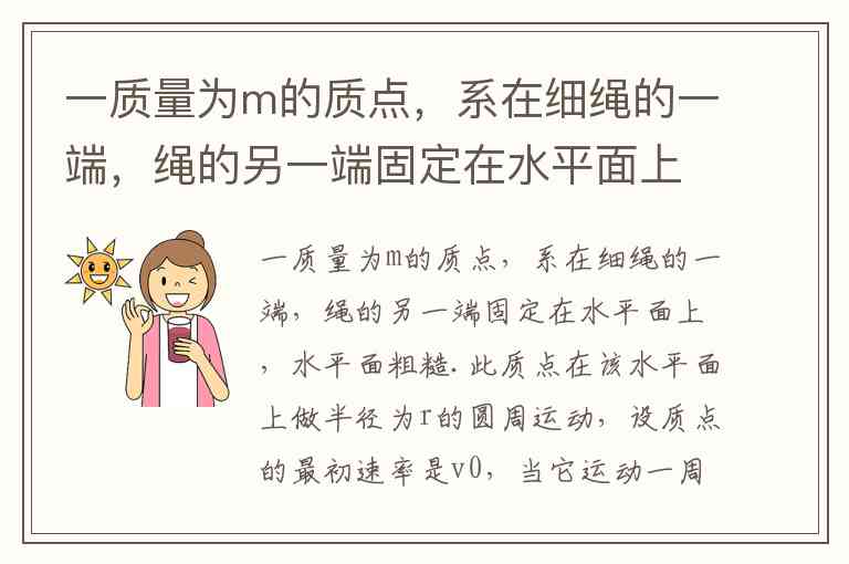 质点在粗糙水平面上做圆周运动时,细绳拉力提供向心力(方向指向圆心),滑动摩擦力始终与速度方向相反,导致速率减小。根据动能定理,摩擦力做的功等于动能变化量。设质点运动一周后速率从变为,则摩擦力做功,由于速率减小,为负值,选项A中“-”后缺少具体表达式,故A错误。