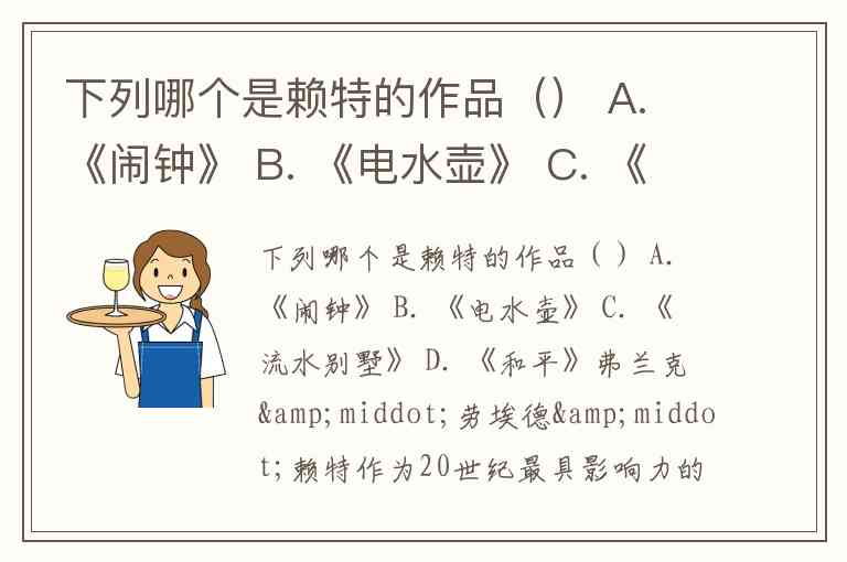下列哪个是赖特的作品() A. 《闹钟》 B. 《电水壶》 C. 《流水别墅》 D. 《和平》