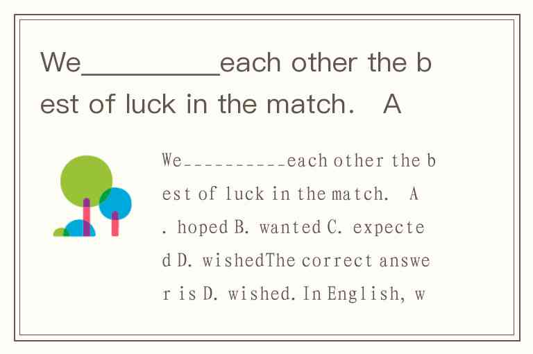 We__________each other the best of luck in the match. A. hoped B. wanted C. expected D. wished