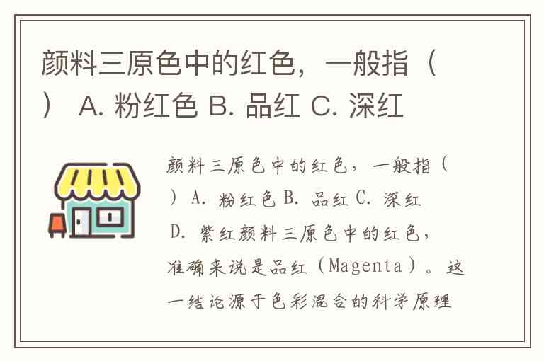 颜料三原色中的红色,一般指() A. 粉红色 B. 品红 C. 深红 D. 紫红