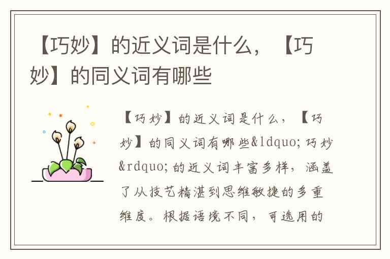 【巧妙】的近义词是什么,【巧妙】的同义词有哪些