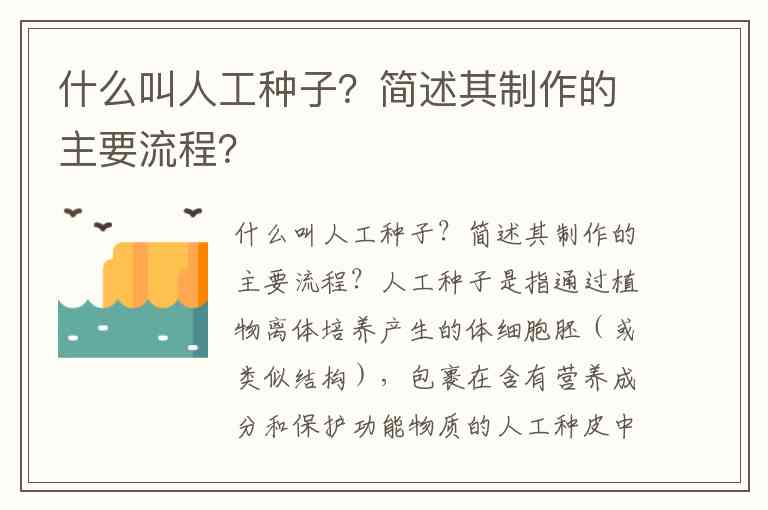 人工种子是指通过植物离体培养产生的体细胞胚(或类似结构),包裹在含有营养成分和保护功能物质的人工种皮中,能像天然种子一样发芽出苗的颗粒体。它突破了传统繁殖依赖自然种子的限制,尤其适用于珍稀植物或脱毒苗的快速培育。