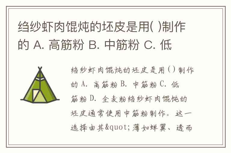 绉纱虾肉馄炖的坯皮是用( )制作的 A. 高筋粉 B. 中筋粉 C. 低筋粉 D. 全麦粉