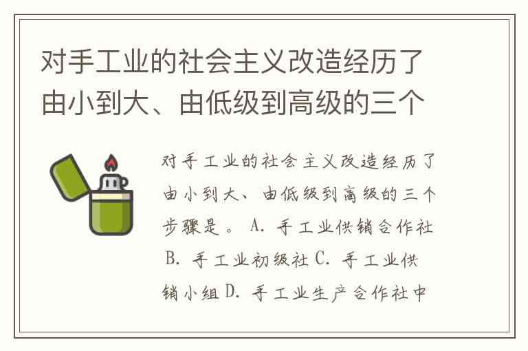 对手工业的社会主义改造经历了由小到大、由低级到高级的三个步骤是 。 A. 手工业供销合作社 B. 手工业初级社 C. 手工业供销小组 D. 手工业生产合作社