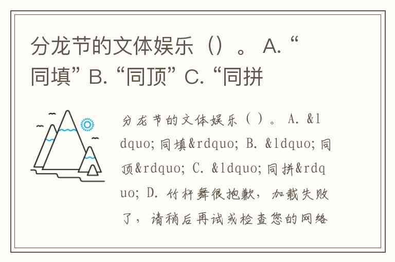 分龙节的文体娱乐()。 A. “同填” B. “同顶” C. “同拼” D. 竹杆舞