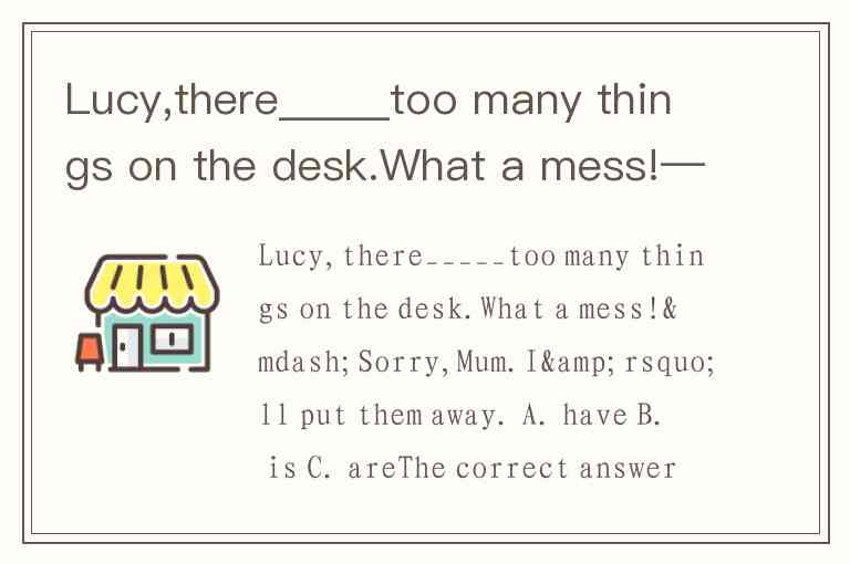 Lucy,there_____too many things on the desk.What a mess!—Sorry,Mum.I’ll put them away. A. have B. is C. are