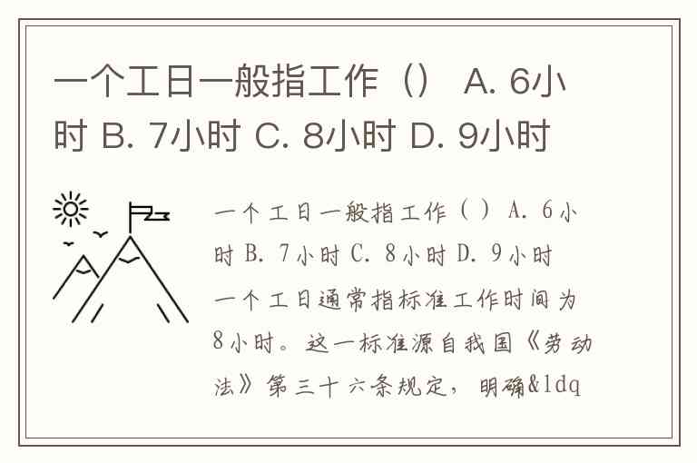 一个工日一般指工作() A. 6小时 B. 7小时 C. 8小时 D. 9小时