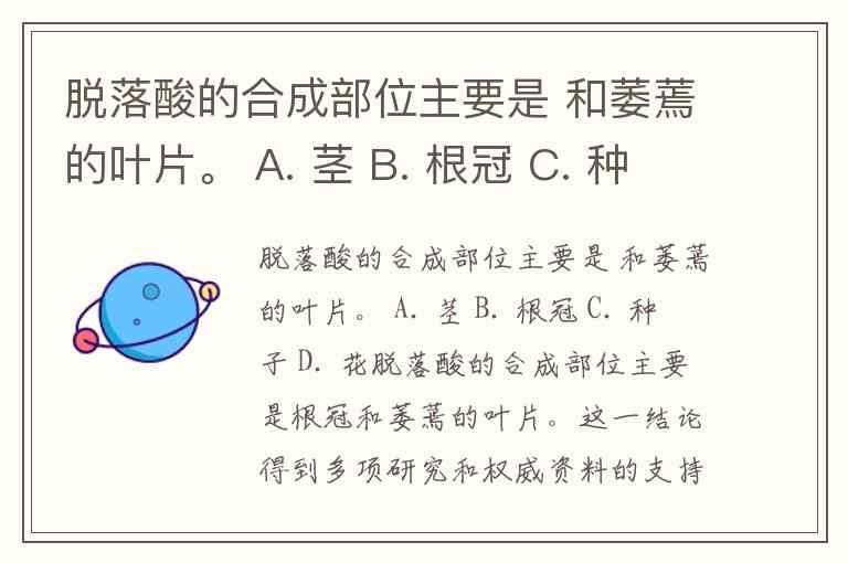 脱落酸的合成部位主要是 和萎蔫的叶片。 A. 茎 B. 根冠 C. 种子 D. 花