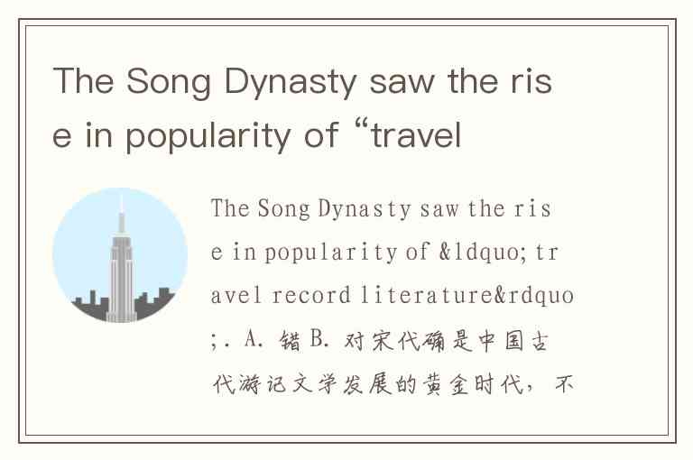 The Song Dynasty saw the rise in popularity of “travel record literature”. A. 错 B. 对