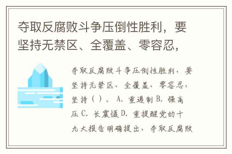 夺取反腐败斗争压倒性胜利,要坚持无禁区、全覆盖、零容忍,坚持()。 A. 重遏制 B. 强高压 C. 长震慑 D. 重提醒