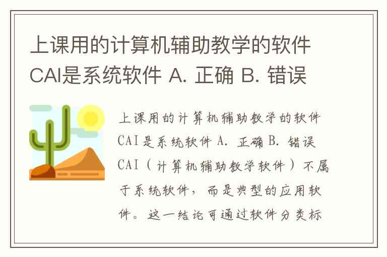 CAI(计算机辅助教学软件)不属于系统软件,而是典型的应用软件。这一结论可通过软件分类标准和CAI的功能定位明确判断: