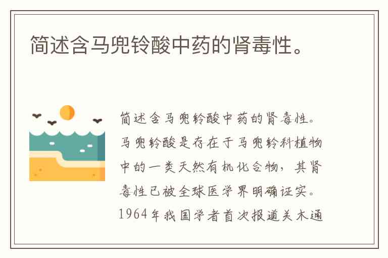 简述含马兜铃酸中药的肾毒性。