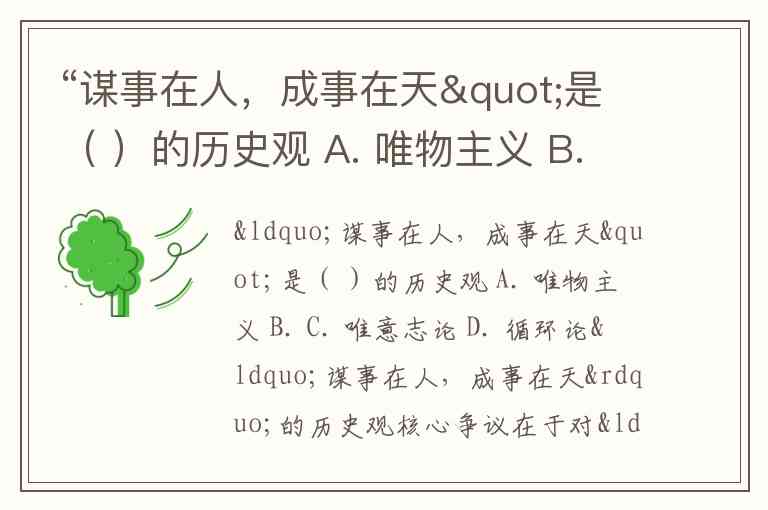 “谋事在人,成事在天"是( )的历史观 A. 唯物主义 B. C. 唯意志论 D. 循环论