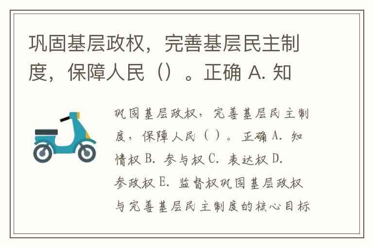 巩固基层政权,完善基层民主制度,保障人民()。正确 A. 知情权 B. 参与权 C. 表达权 D. 参政权 E. 监督权