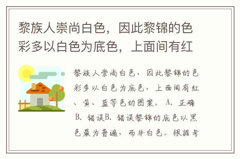 黎族人崇尚白色,因此黎锦的色彩多以白色为底色,上面间有红、黄、蓝等色的图案。 A. 正确 B. 错误