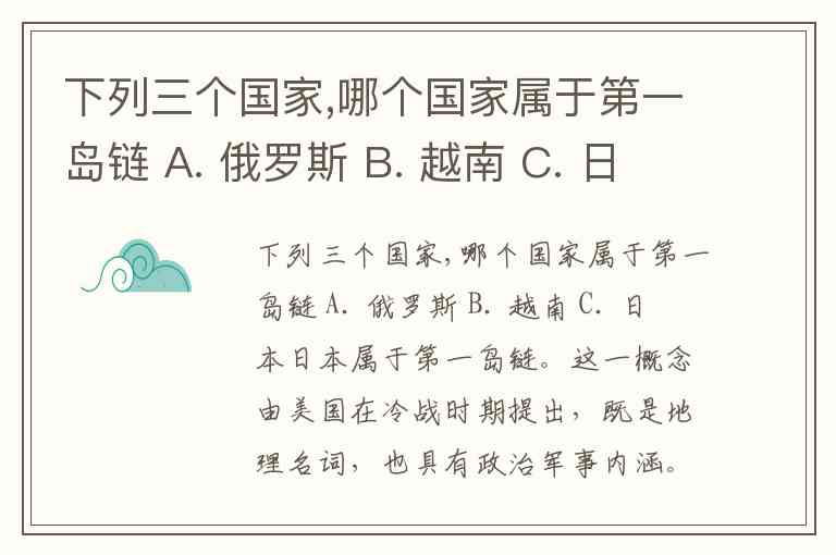 下列三个国家,哪个国家属于第一岛链 A. 俄罗斯 B. 越南 C. 日本