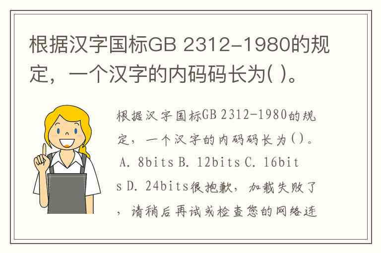 根据汉字国标GB 2312-1980的规定,一个汉字的内码码长为( )。 A. 8bits B. 12bits C. 16bits D. 24bits