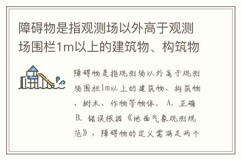 障碍物是指观测场以外高于观测场围栏1m以上的建筑物、构筑物、树木、作物等物体。 A. 正确 B. 错误