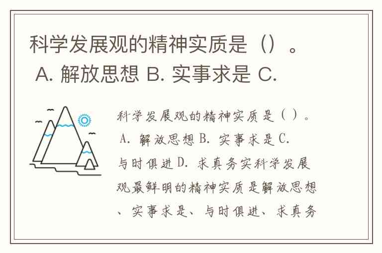 科学发展观的精神实质是()。 A. 解放思想 B. 实事求是 C. 与时俱进 D. 求真务实