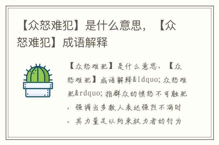 【众怒难犯】是什么意思,【众怒难犯】成语解释