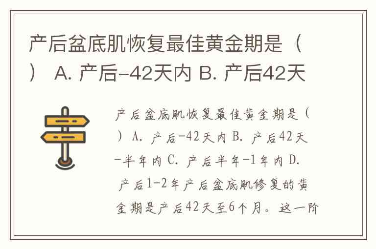 产后盆底肌恢复最佳黄金期是() A. 产后-42天内 B. 产后42天-半年内 C. 产后半年-1年内 D. 产后1-2年