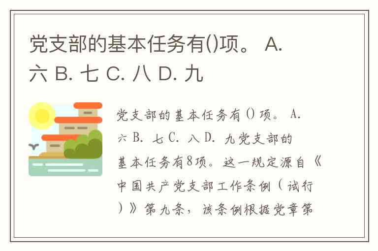 党支部的基本任务有()项。 A. 六 B. 七 C. 八 D. 九