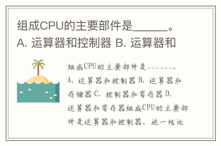 组成CPU的主要部件是______。 A. 运算器和控制器 B. 运算器和存储器 C. 控制器和寄存器 D. 运算器和寄存器