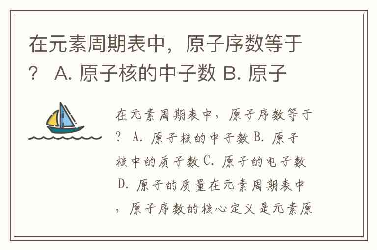 在元素周期表中,原子序数等于? A. 原子核的中子数 B. 原子核中的质子数 C. 原子的电子数 D. 原子的质量