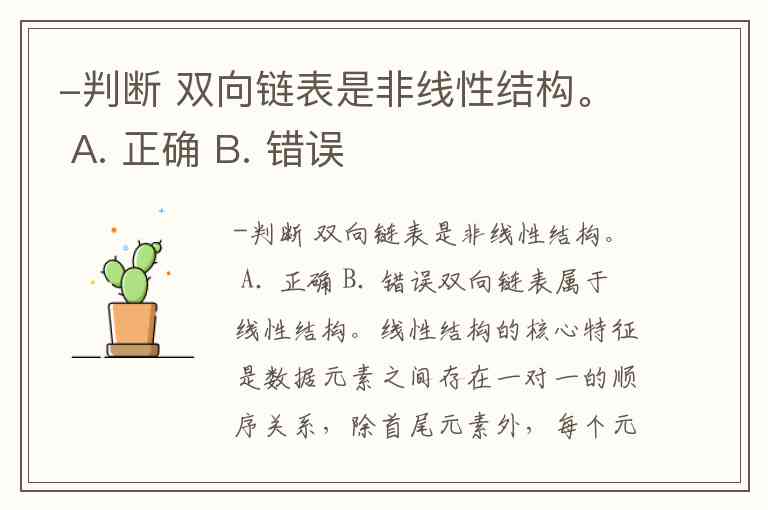 -判断 双向链表是非线性结构。 A. 正确 B. 错误