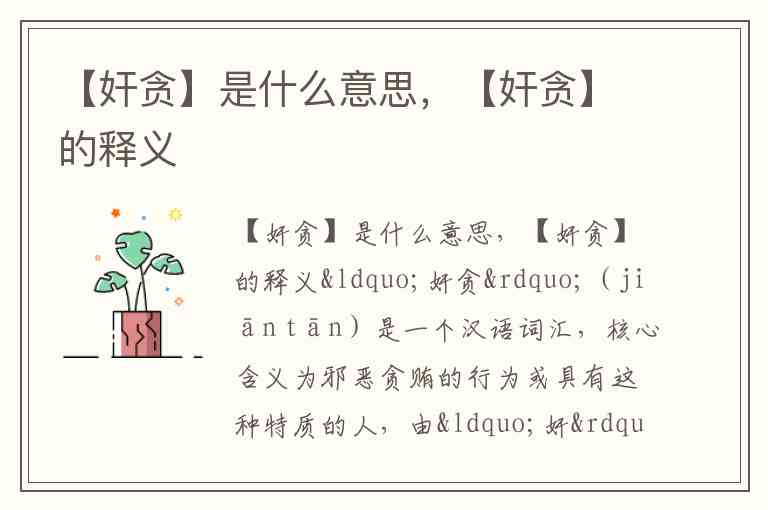 “奸贪”(jiān tān)是一个汉语词汇,核心含义为邪恶贪贿的行为或具有这种特质的人,由“奸”(虚伪狡诈)与“贪”(过度索取)组合而成,在古代文献和现代汉语中均有使用。