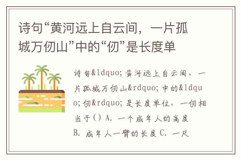 诗句“黄河远上自云间,一片孤城万仞山”中的“仞”是长度单位,一仞相当于( ) A. 一个成年人的高度 B. 成年人一臂的长度 C. 一尺 D. 一丈