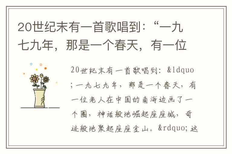 20世纪末有一首歌唱到:“一九七九年,那是一个春天,有一位老人在中国的南海边画了一个圈,神话般地崛起座座城,奇迹般地聚起座座金山。”这反映的是() A. 沿海开放城市的设立 B. 沿海经济开放区的开辟 C. 经济技术开发区的设立 D. 经济特区的设立