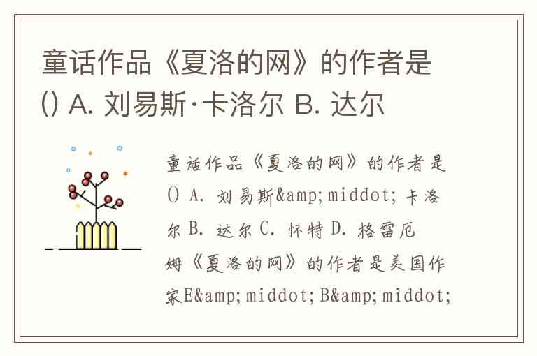 童话作品《夏洛的网》的作者是() A. 刘易斯·卡洛尔 B. 达尔 C. 怀特 D. 格雷厄姆