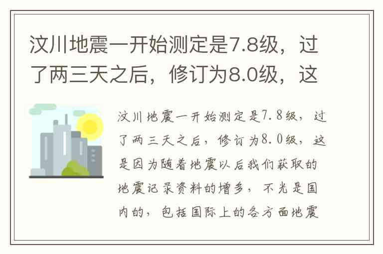 汶川地震震级从7.8级修订为8.0级的主要原因是地震后获取的记录资料增多,包括国内和国际多方面数据,使测定结果更精准。文中明确指出“随着地震以后我们获取的地震记录资料的增多……得到进一步准确的结果”,这是修订震级的直接原因。