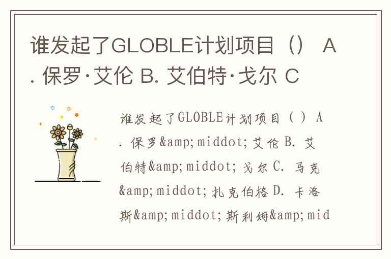 需要注意的是,其他选项人物的领域与"GLOBLE计划"无直接关联:保罗·艾伦(微软联合创始人)、卡洛斯·斯利姆·埃卢(墨西哥企业家)、马克·扎克伯格(Meta创始人)均以科技或商业成就著称,公开资料中未见与该计划的关联记录。因此综合判断,正确答案为A. 艾伯特·戈尔。