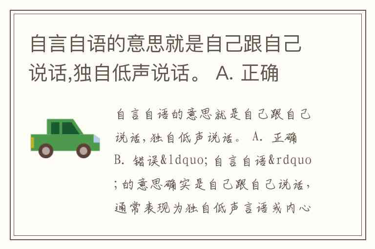 自言自语的意思就是自己跟自己说话,独自低声说话。 A. 正确 B. 错误