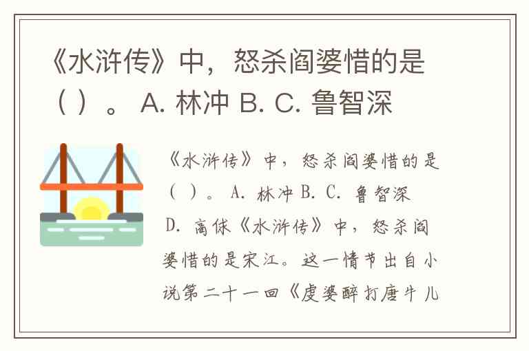 《水浒传》中,怒杀阎婆惜的是( )。 A. 林冲 B. C. 鲁智深 D. 高俅