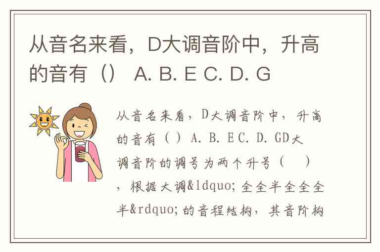 从音名来看,D大调音阶中,升高的音有() A. B. E C. D. G