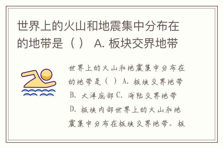 世界上的火山和地震集中分布在的地带是( ) A. 板块交界地带 B. 大洋底部 C. 海陆交界地带 D. 板块内部