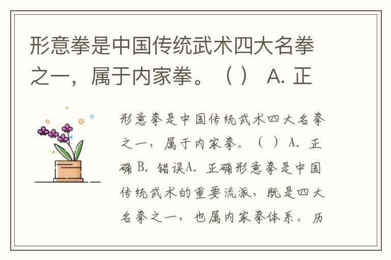 形意拳是中国传统武术四大名拳之一,属于内家拳。( ) A. 正确 B. 错误