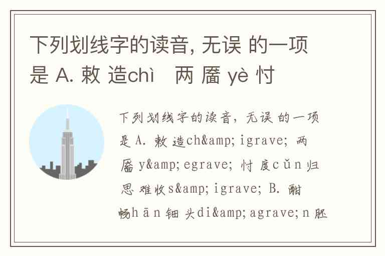 “敕造”的“敕”,记得应该是chì,没错,古代皇帝的命令,这个读音正确。“两靥”的“靥”,指酒窝,读音yè,正确。“忖度”的“忖”,cǔn,思考、揣度的意思,正确。“归思难收”的“思”,这里“思”应该读什么呢?“归思”中的“思”通常指思绪、思念,应该读sī,而选项里注的是sì,这里可能错误。所以A选项最后一个字错误。