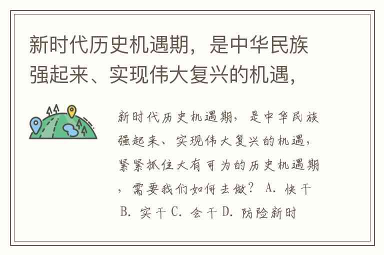 新时代历史机遇期,是中华民族强起来、实现伟大复兴的机遇,紧紧抓住大有可为的历史机遇期,需要我们如何去做? A. 快干 B. 实干 C. 会干 D. 防险